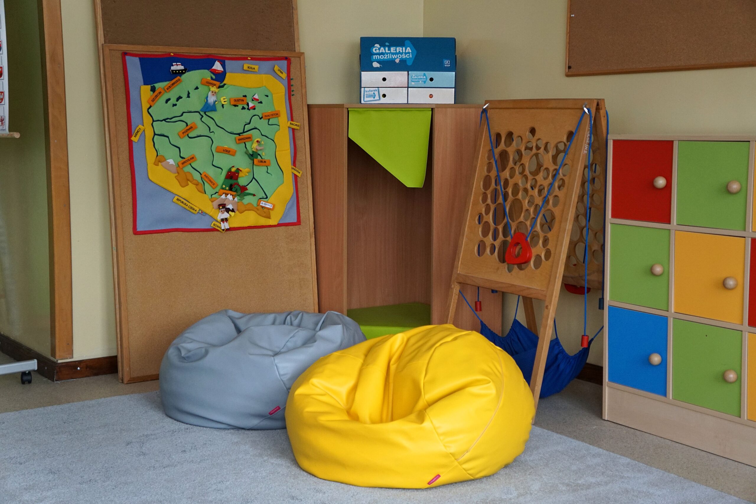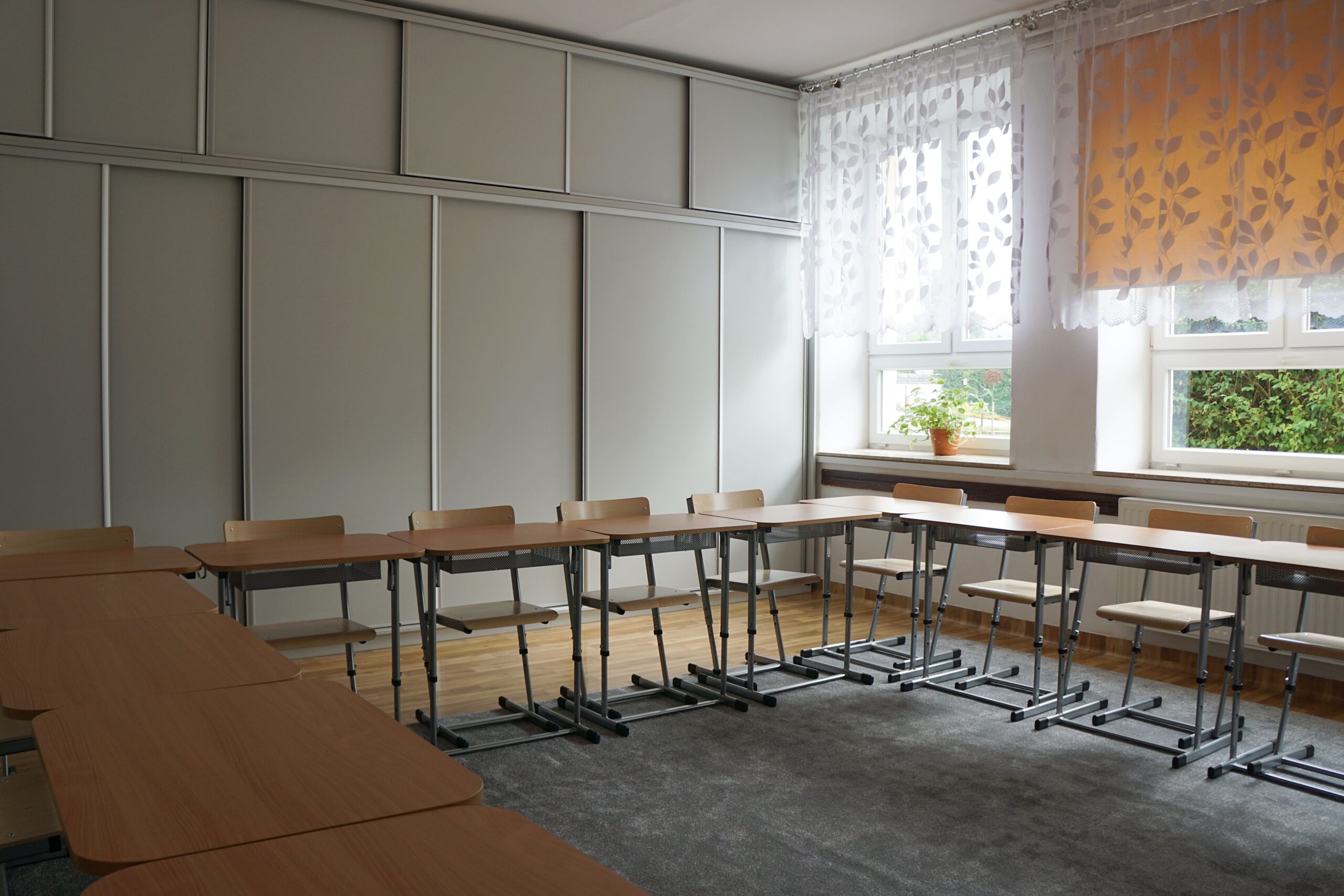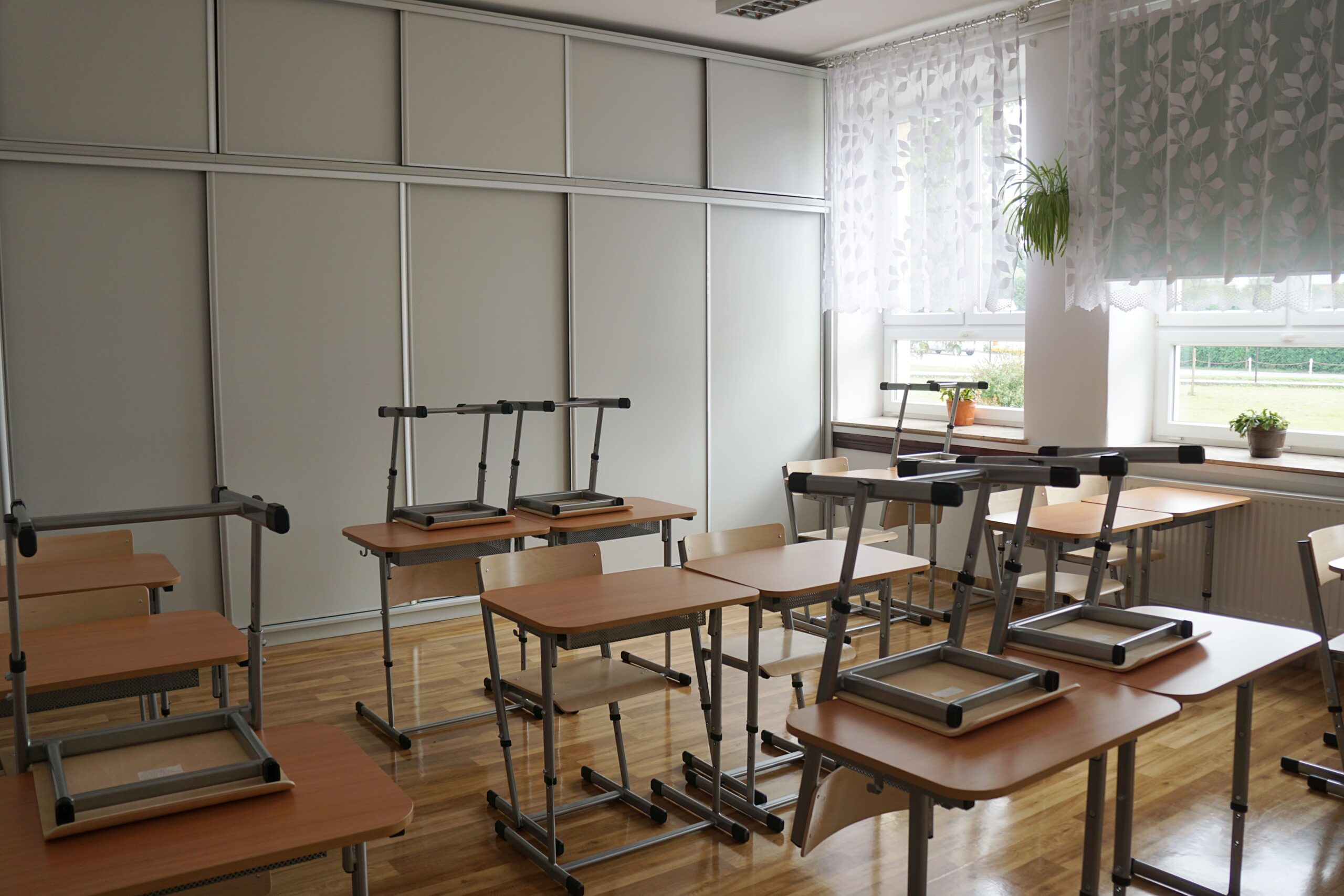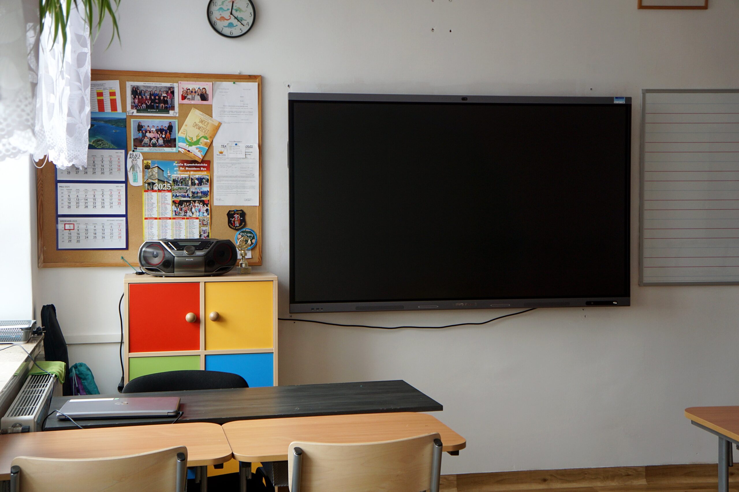 – meble (stoliki terminalowe, krzesła uczniowskie, biurko i fotel dla nauczyciela/ nauczycielki, szafy do przechowywania pomocy)
